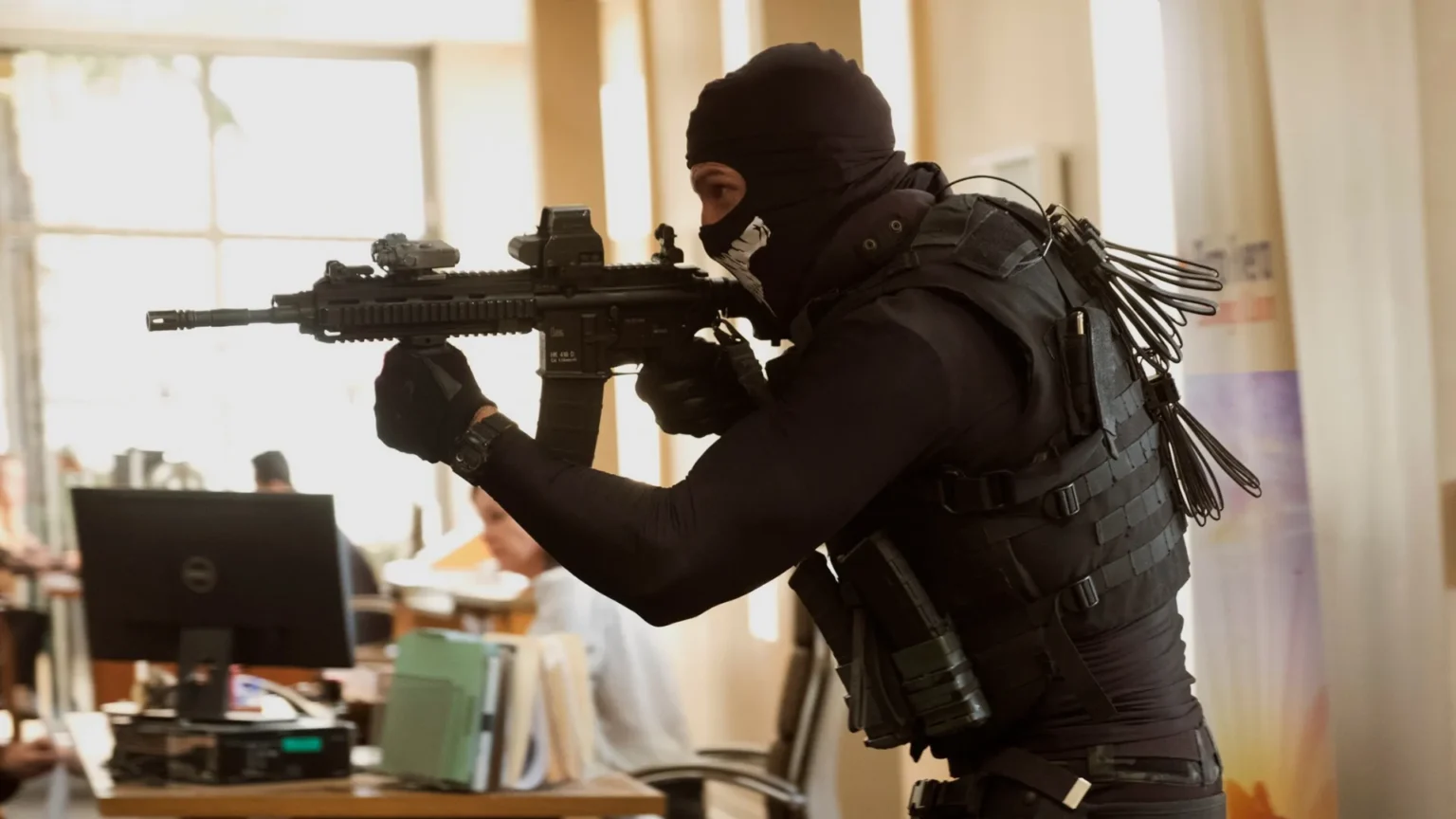 A comparação fica ainda mais evidente nas cenas finais. O confronto armado do filme de Gerard Butler lembra muito a memorável cena do assalto ao banco em “Heat”, com uma troca de tiros intensa e urgente pelas ruas de Los Angeles. Porém, ao contrário do exagero comum em muitos thrillers, o desfecho aqui se mantém mais fiel ao realismo, tornando os confrontos plausíveis e carregados de suspense.