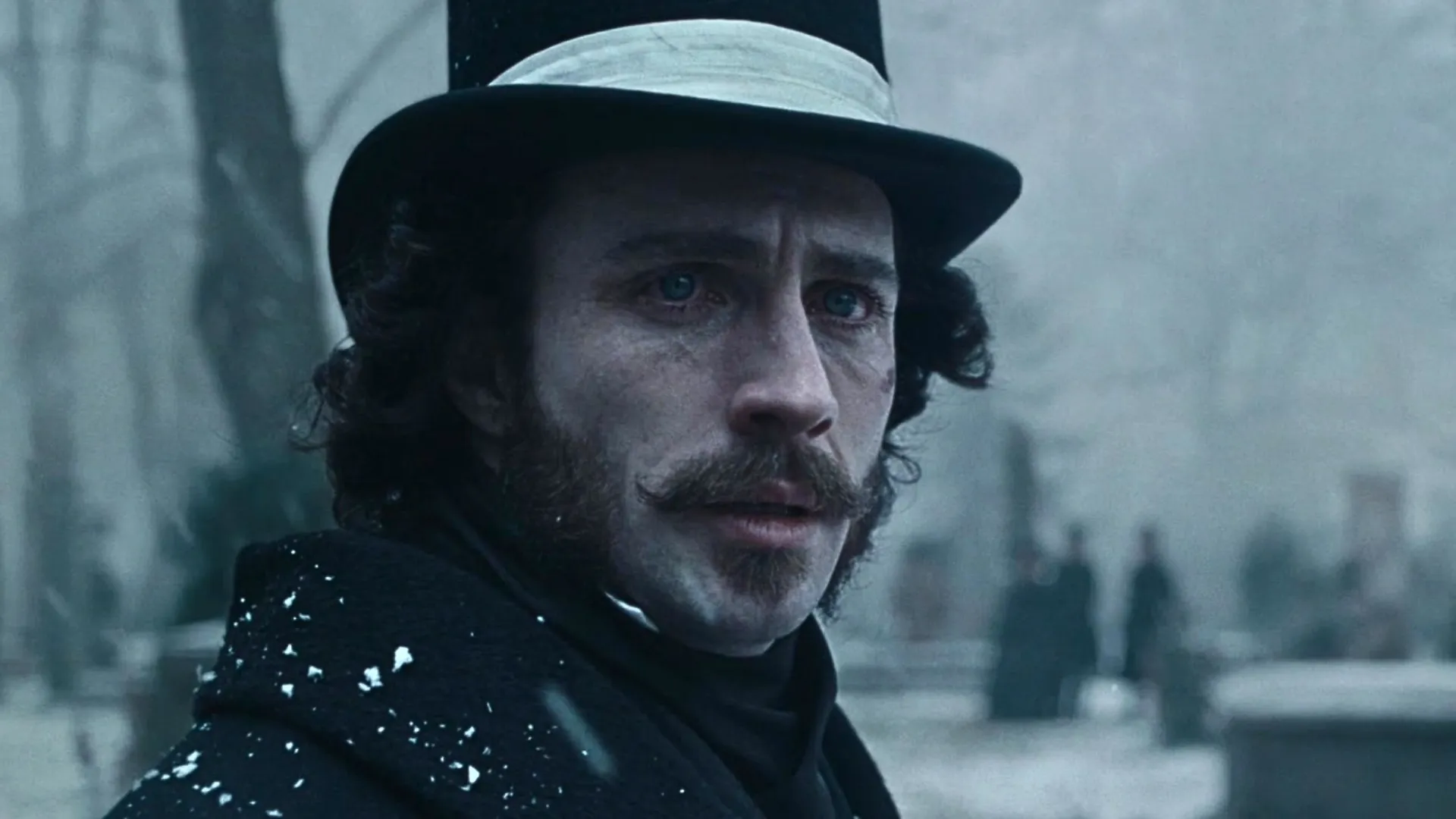 O material divulgado traz uma estética quase inteiramente em preto e branco, com sutis toques de cor, o que reforça o tom opressivo do longa. A narrativa acompanha um casal vivido por Taylor-Johnson e Depp, que chega a um povoado sombrio enquanto enfrenta dificuldades e perigos, incluindo crianças em situações delicadas.